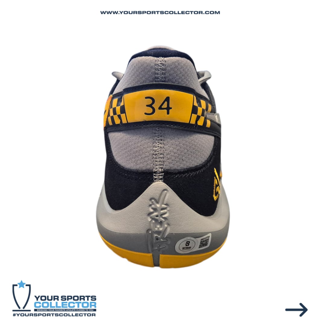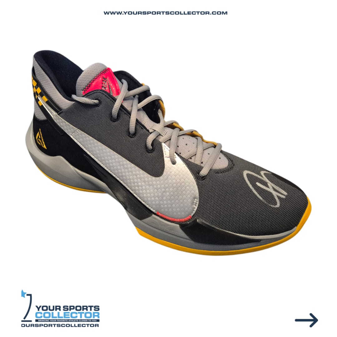 Nike Giannis Antetokounmpo Freak 2 player edition Basketball shoe. Hand-signed by Giannis Antetokounmpo. The autograph includes an official Beckett Authentication Services serially-numbered hologram for authenticity purposes.