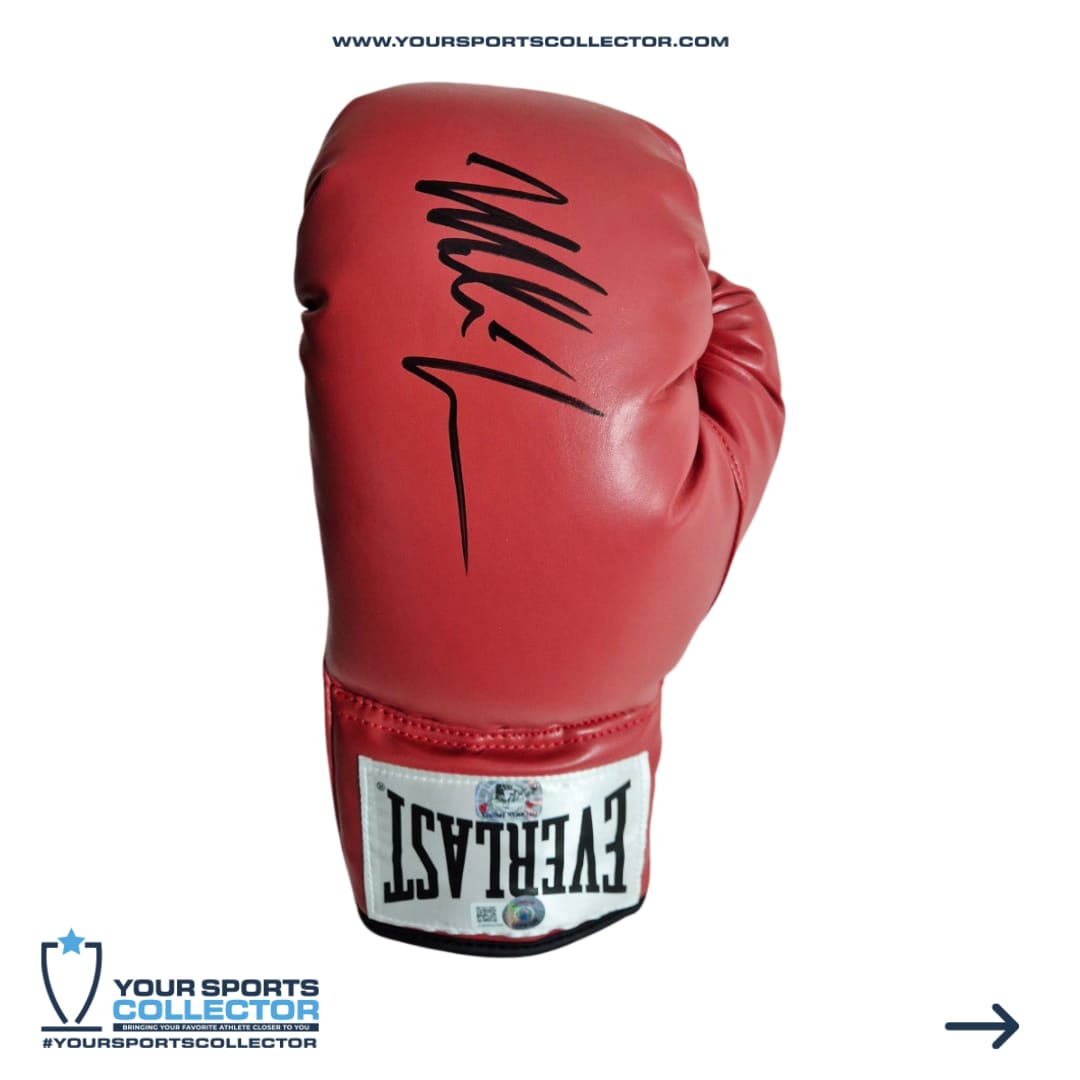 Boxing Glove hand-signed by Mike Tyson. The autograph includes an official Beckett Authentication Services serially-numbered hologram for authenticity purposes.