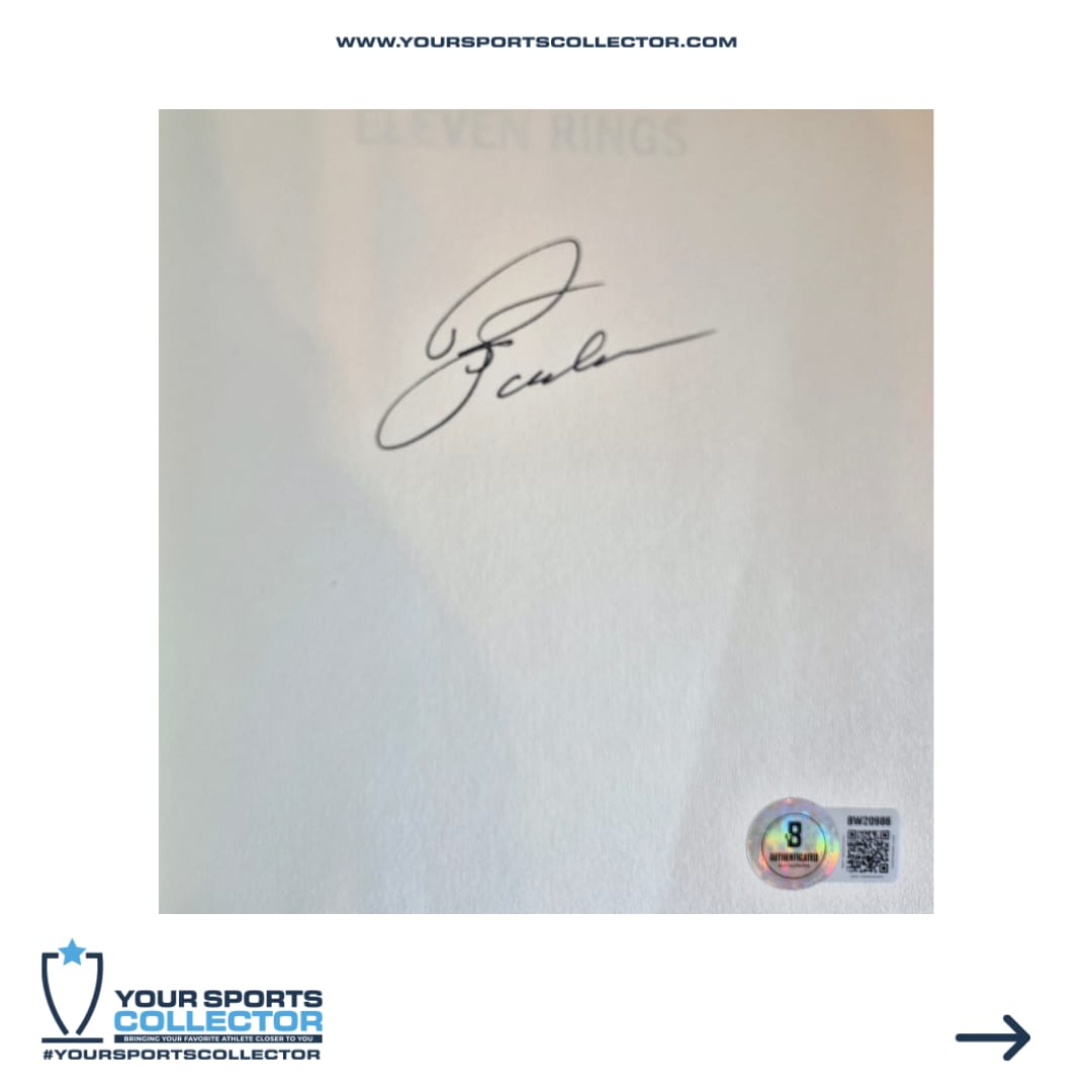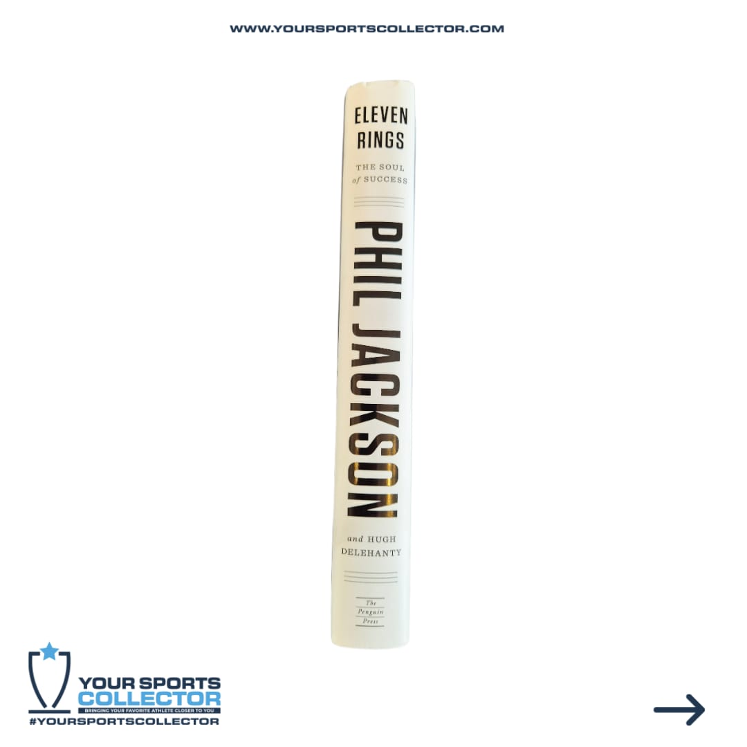 Eleven Rings: The Soul of Success’ Hardcover Book. Hand-signed by former Head Coach Phil Jackson. The autograph includes an official Beckett Authentication Services serially-numbered hologram for authenticity purposes.